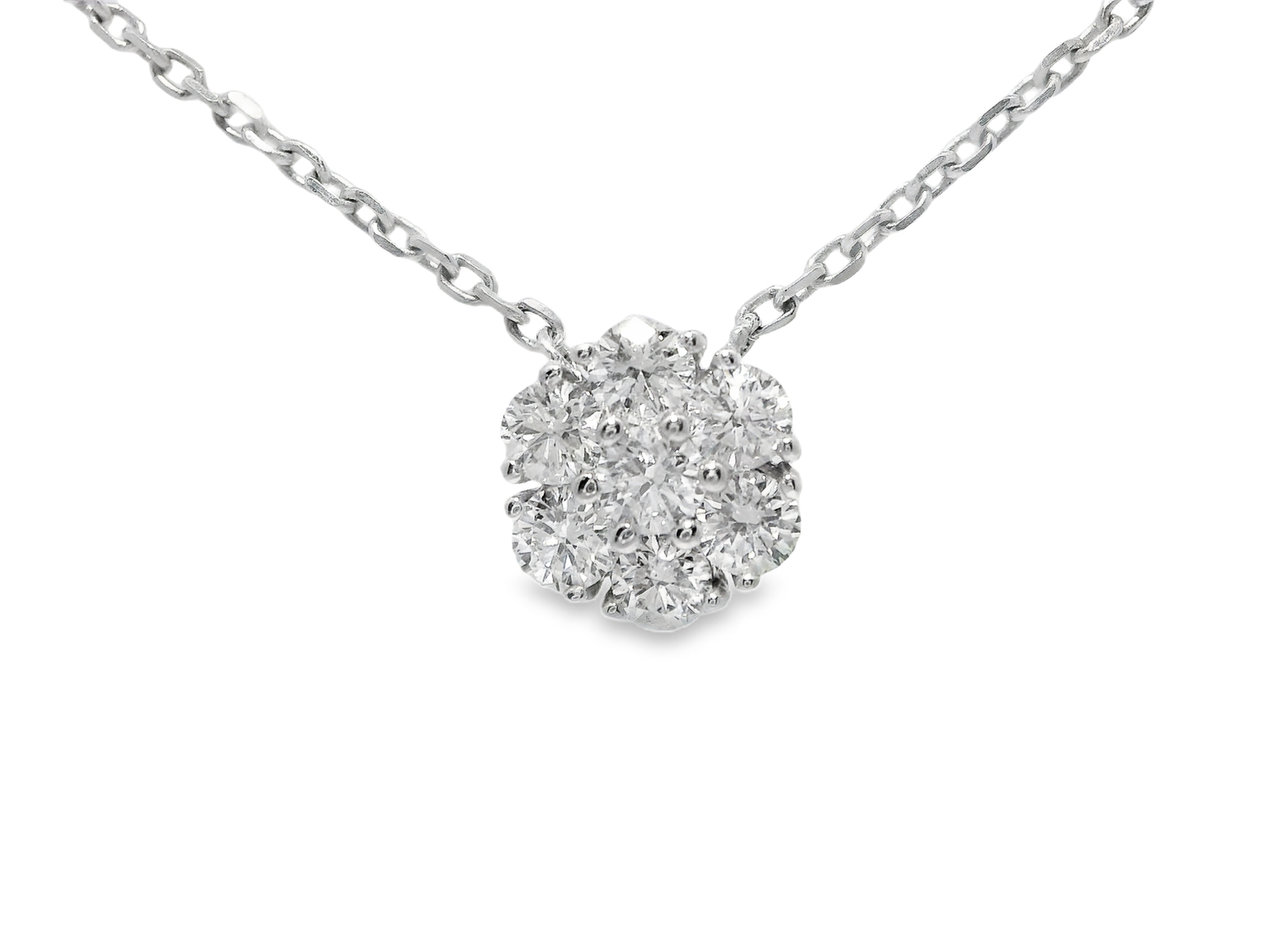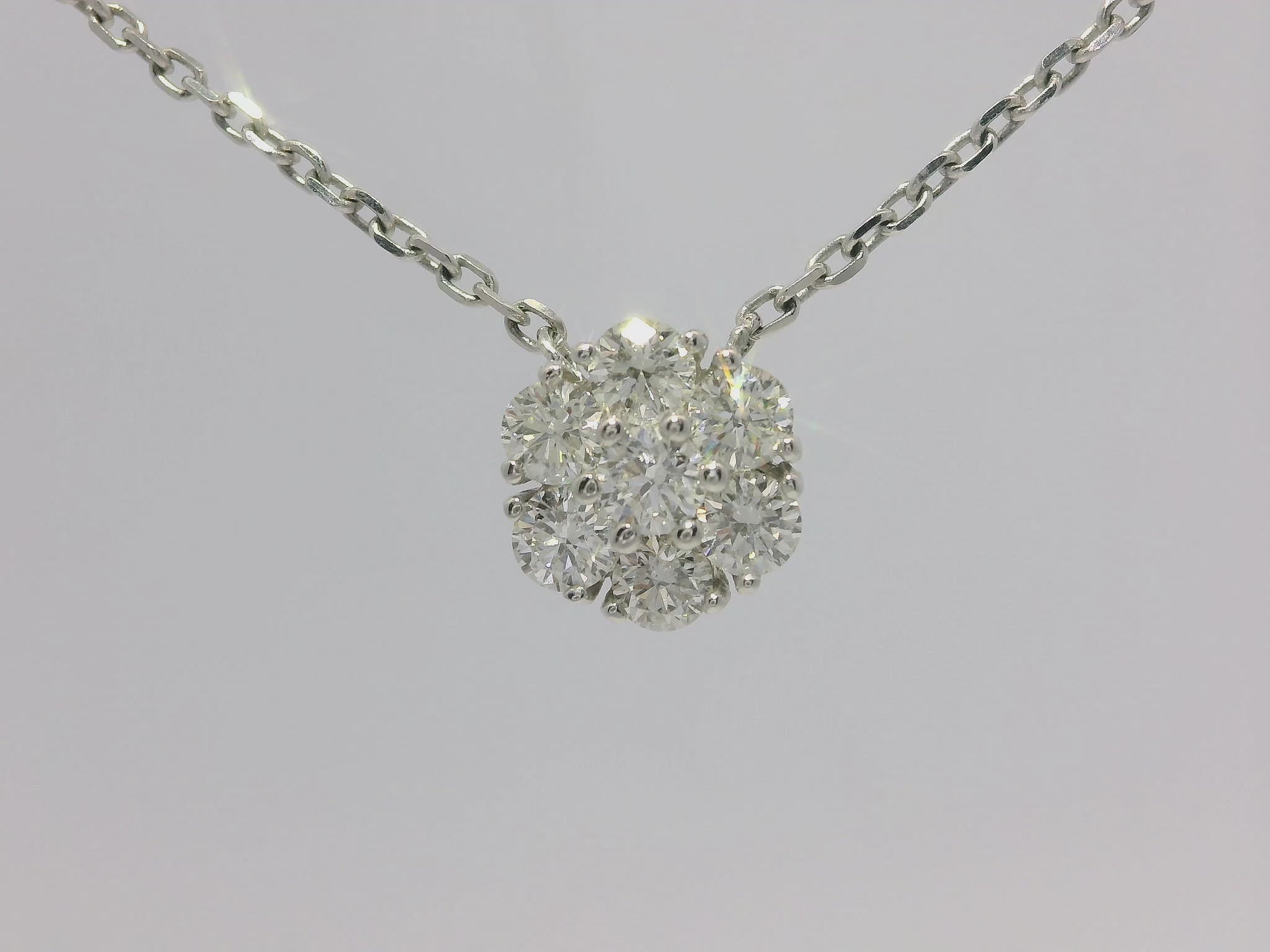 Discover the elegance of our 0.86CT Diamond Pendant in 14k White Gold. Expertly crafted with shimmering diamonds, this pendant exudes a timeless beauty that will elevate any outfit. With its high quality materials and stunning design, this pendant is a must-have for any jewelry collection.