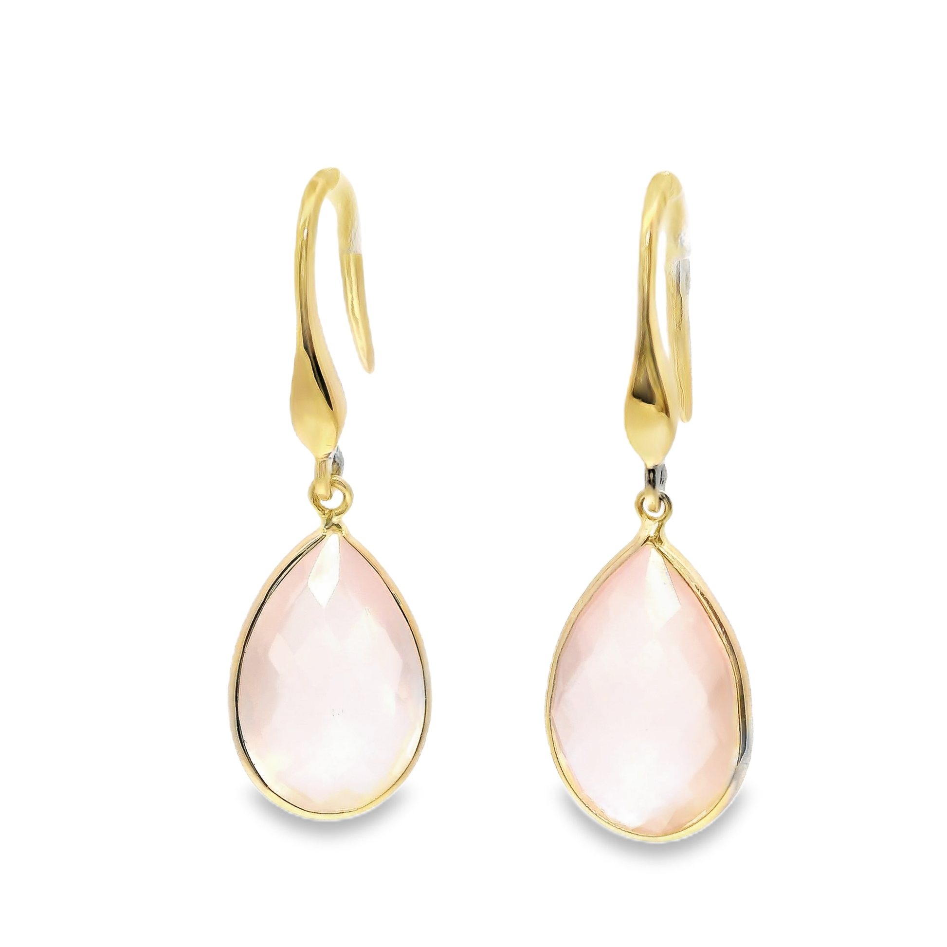 Elegant Pink Quartz Hoop Earrings crafted in luxurious 14k Yellow Gold. These sophisticated accessories feature the delicate hue of pink quartz, perfectly complemented by the warm tones of yellow gold. The classic hoop design offers versatility for both everyday wear and special occasions, while the premium materials ensure lasting quality and value.