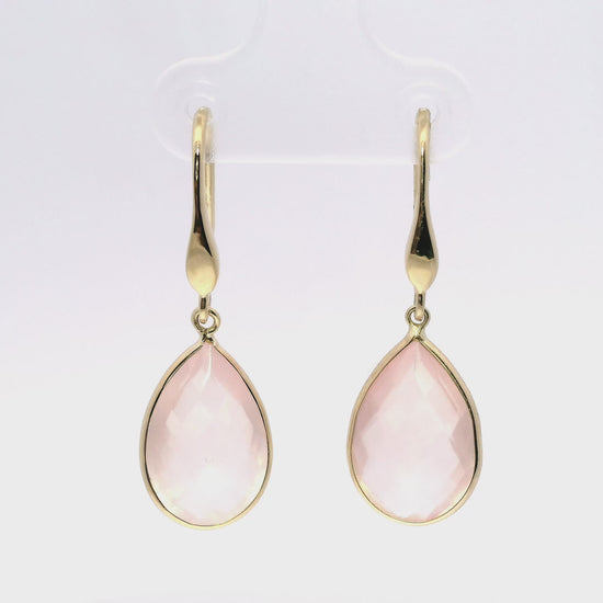 Pink Quartz Hoop Earring 14k Yellow Gold