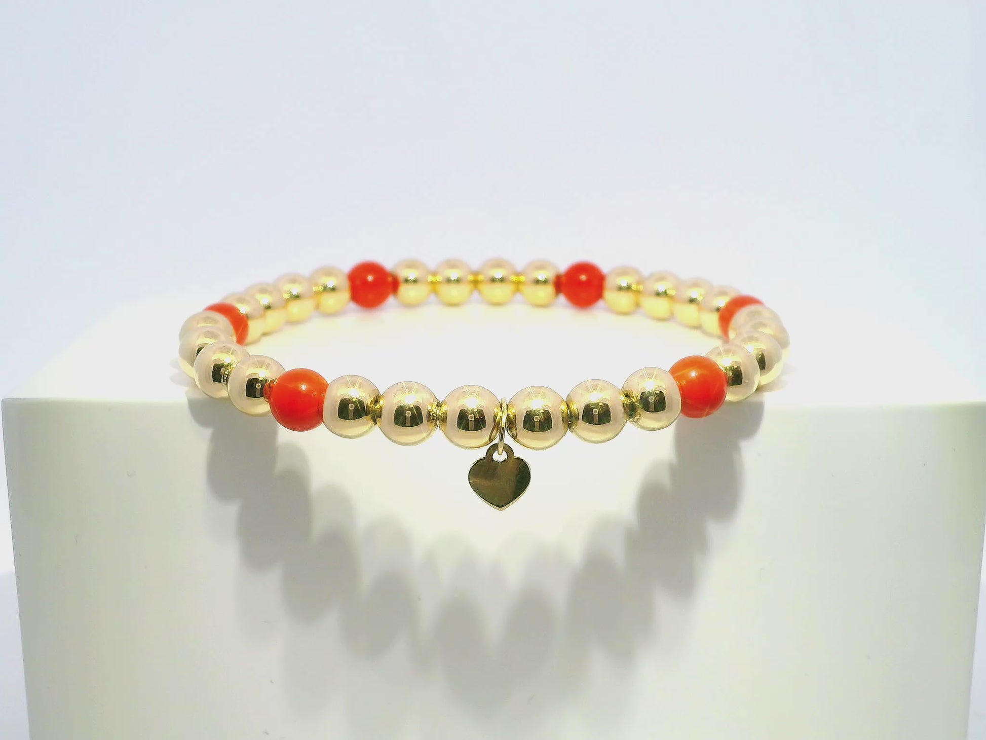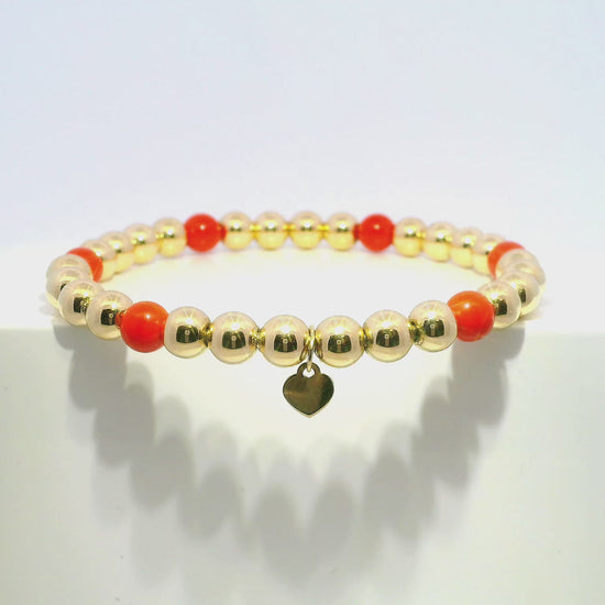 Plain Beaded with Corallo 14k Yellow Gold Bangle