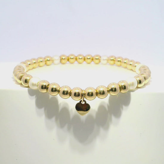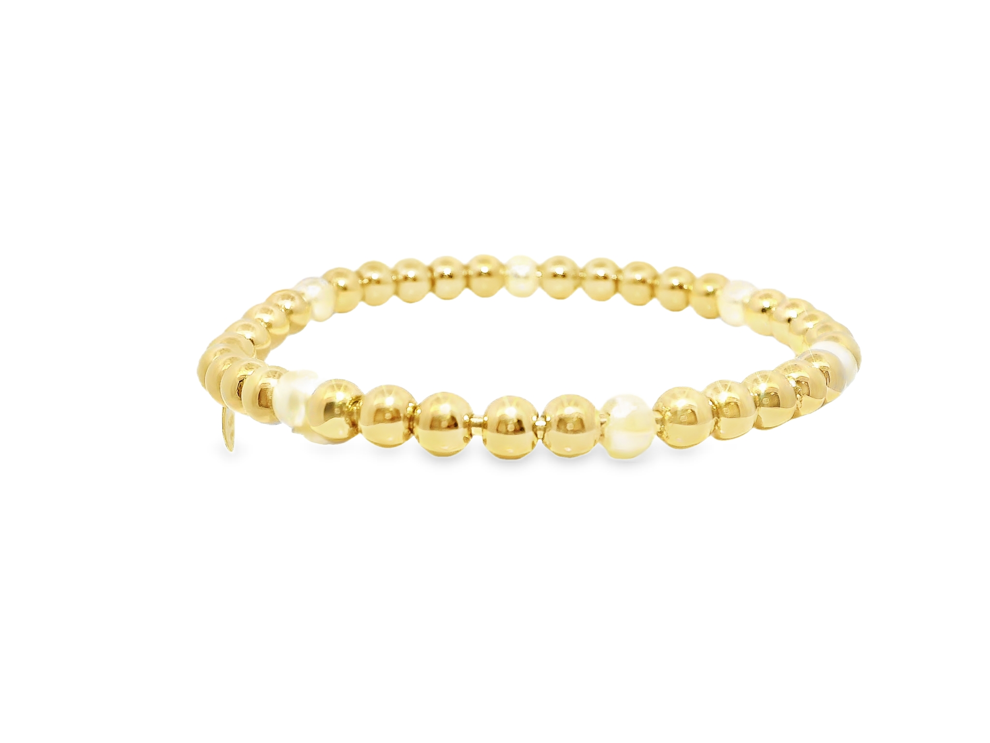 Plain Beaded with Perla 14k Yellow Gold Bangle