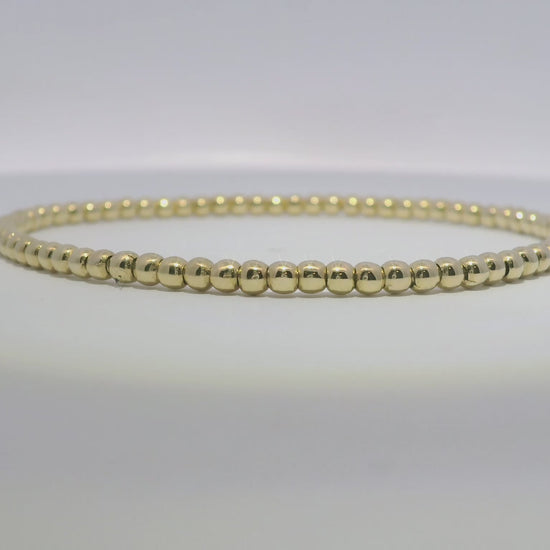 Plain Gold Beads Stretch Bangle 14k Yellow Gold