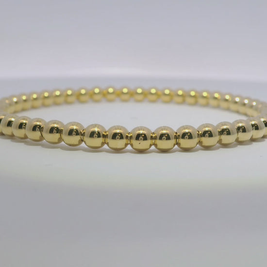 Plain Gold Beads Stretch Bangle 18k Yellow Gold