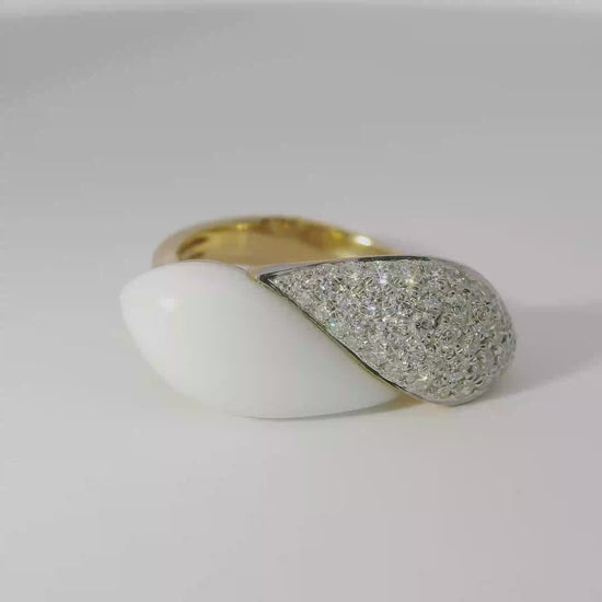 This 0.56-carat diamond ring features a striking black agate centerpiece set in 14k yellow gold. The combination of the deep black agate and the brilliant diamond creates a sophisticated contrast, highlighting the craftsmanship and quality of the materials. Designed for those who appreciate refined elegance, this ring offers both timeless style and enduring value.