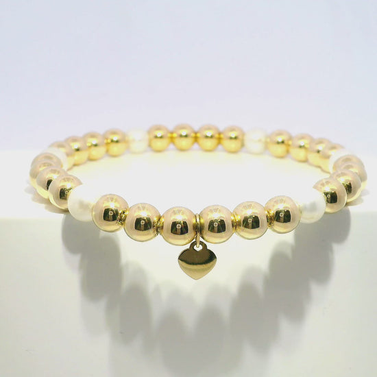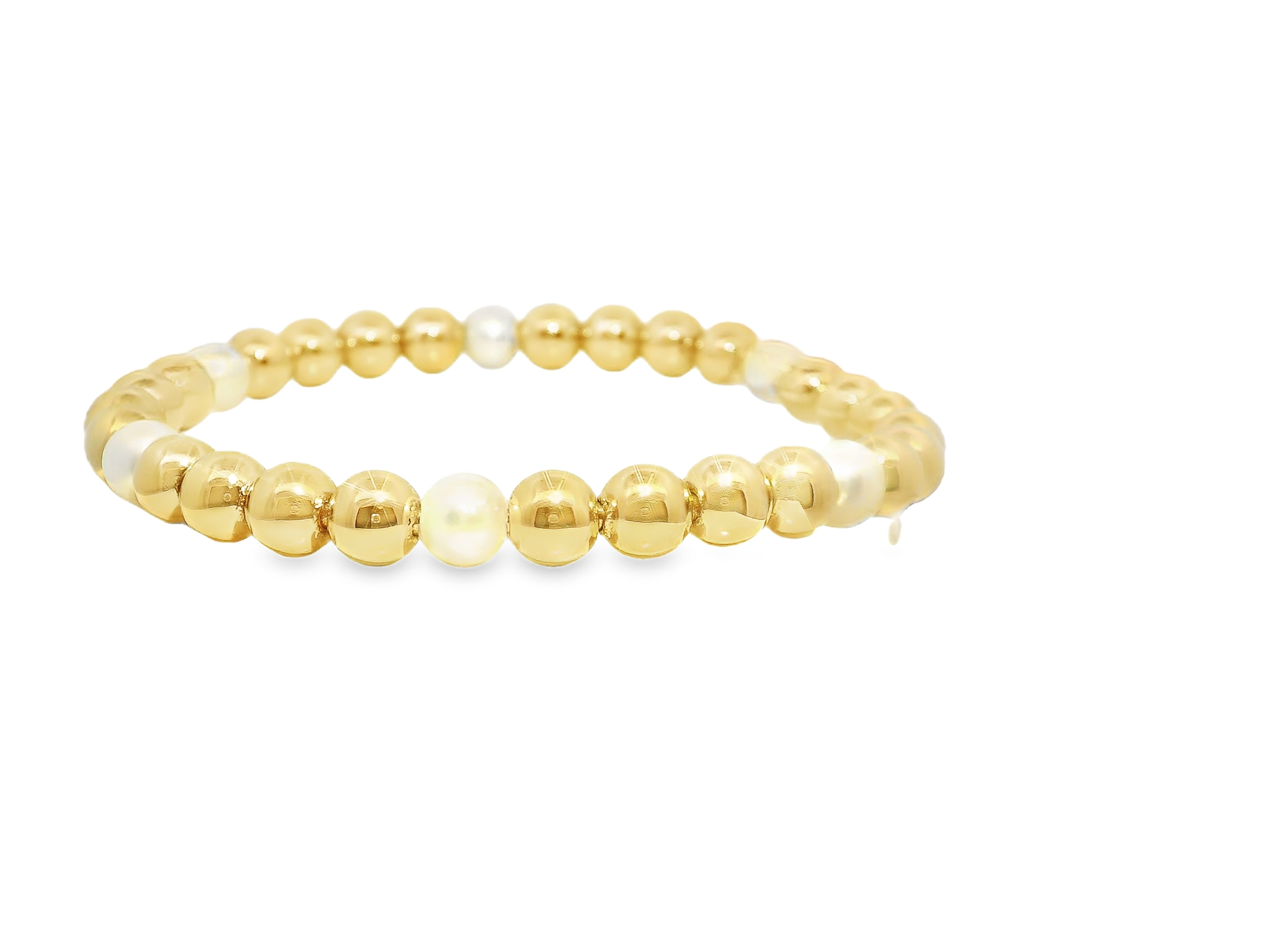Plain Beaded with Perla 14k Yellow Gold Bangle