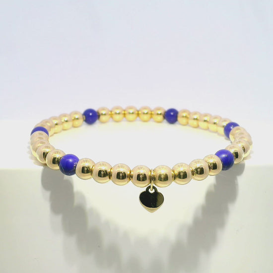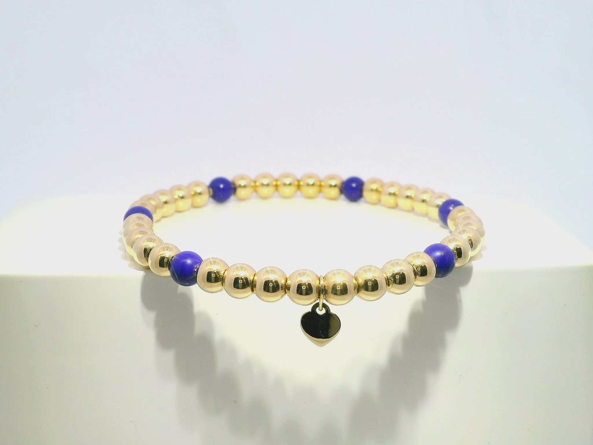 Plain Beaded with Lapis 14k Yellow Gold Bangle