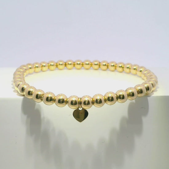 Plain Beaded 14k Yellow Gold Bangle