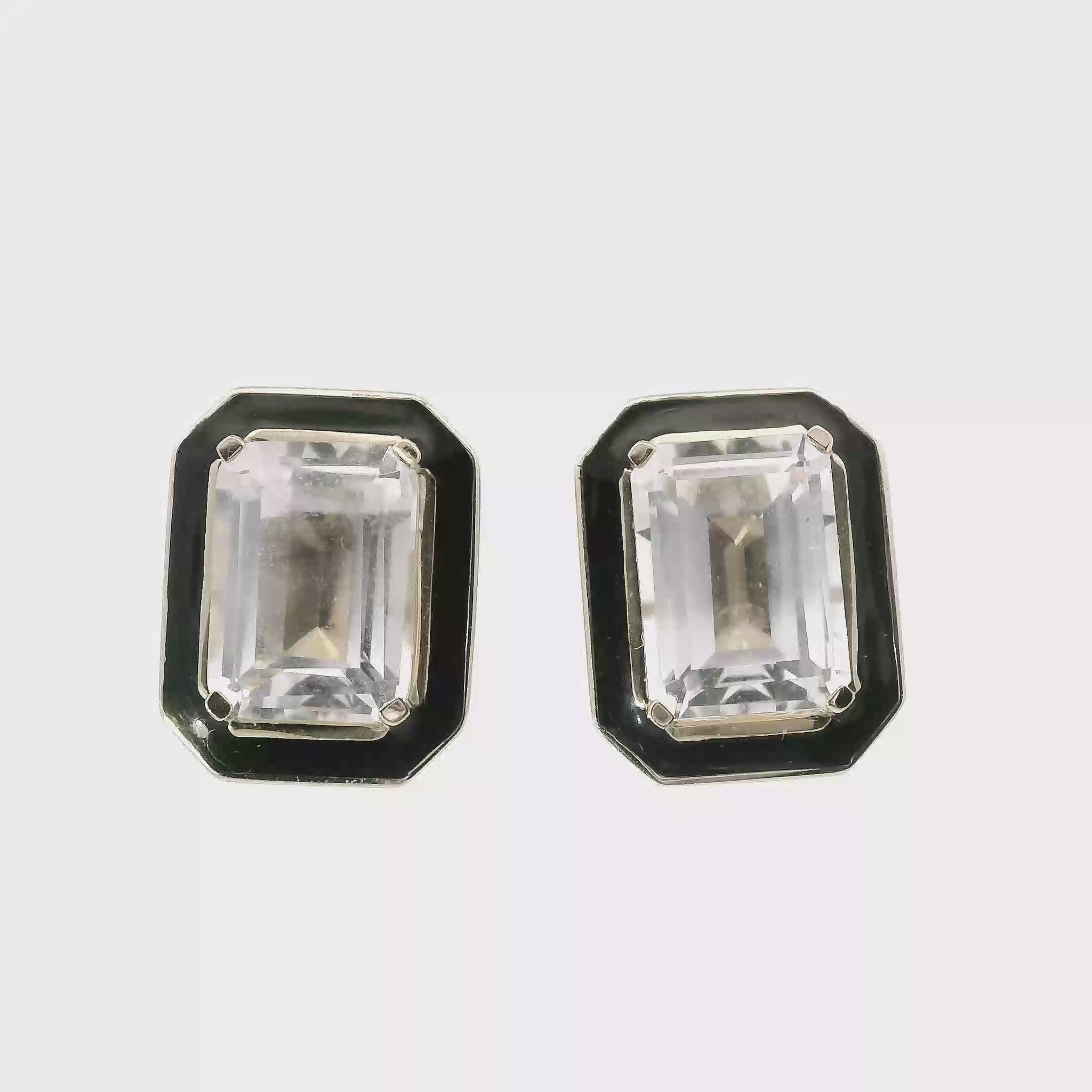 Crafted in 14k white gold, this earring features a brilliant white topaz set against a sleek enamel backdrop. Its refined design combines durability with elegance, making it an excellent choice for both everyday wear and special occasions. The high-quality materials ensure lasting shine and comfort, reflecting expert craftsmanship in every detail.